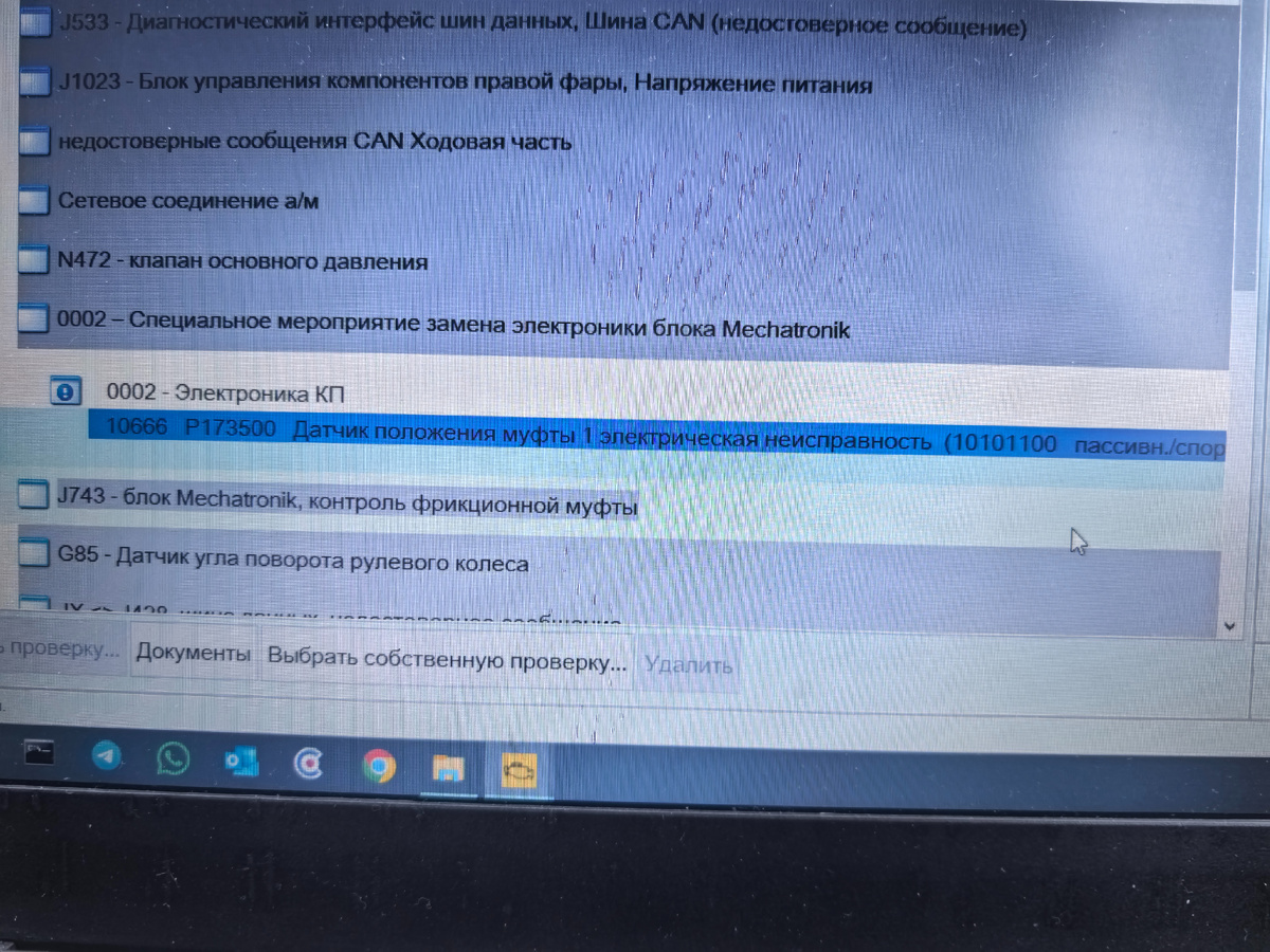 Ошибки: P081000 "Подача сигнала на фрикционную муфту Сбой в работе" P173500 "Датчик положения муфты 1 электрическая неисправность" Р175Е00 «Сцепление 1 самопроизвольно