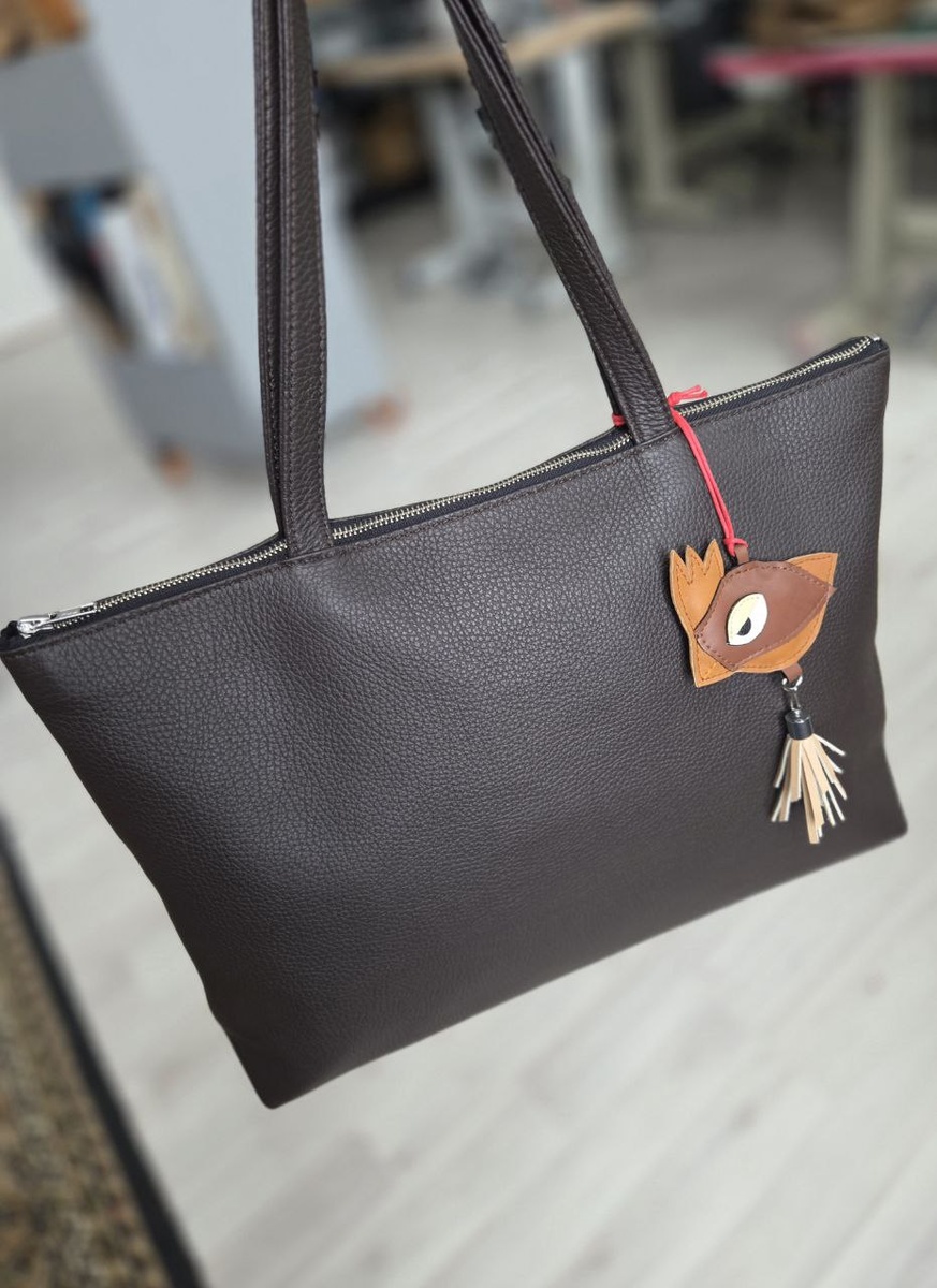 Классическая лаконичная, строгая, элегантная кожаная сумка и яркая подвеска, по-моему отлично подходят друг другу!