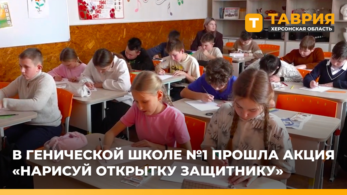 В Генической школе №1 прошла акция «Нарисуй открытку Защитнику». Ученики подготовили памятные рисунки для участников спецоперации. Подобные творческие уроки пройдут и в других школах. Детское творчество — самая искренняя и сильная поддержка. Такие открытки вдохновляли бойцов даже во время Великой Отечественной войны. Внимание школьников для участников СВО тоже необходимо. Школьники рисуют для своих отцов и братьев на фронте пейзажи, портреты близких и образы будущей победы. Акция «Нарисуй открытку Защитнику» проводится не впервые. В этом году к ней присоединились все школы Геническа. Выставка лучших рисунков состоится в кинотеатре «Россия». Ранее ТРК «Таврия» сообщала, что в преддверии Дня защитника Отечества активисты «Движения Первых» встретились с бойцом СВО с позывным Серый.