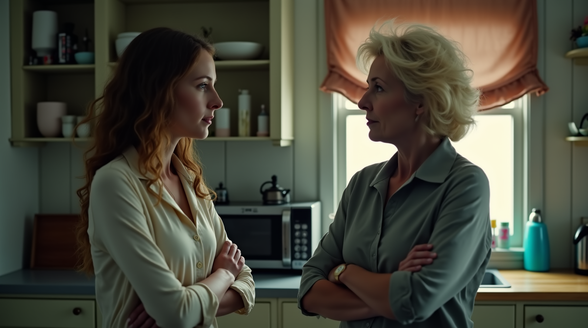 Однажды вечером, когда свекровь пришла на ужин, она села с Дианой на кухне, пока Сергей смотрел новости.