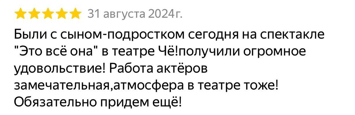 спектакль «Это всё она». Вот несколько отзывов с наших карт. Билеты на 15 февраля
