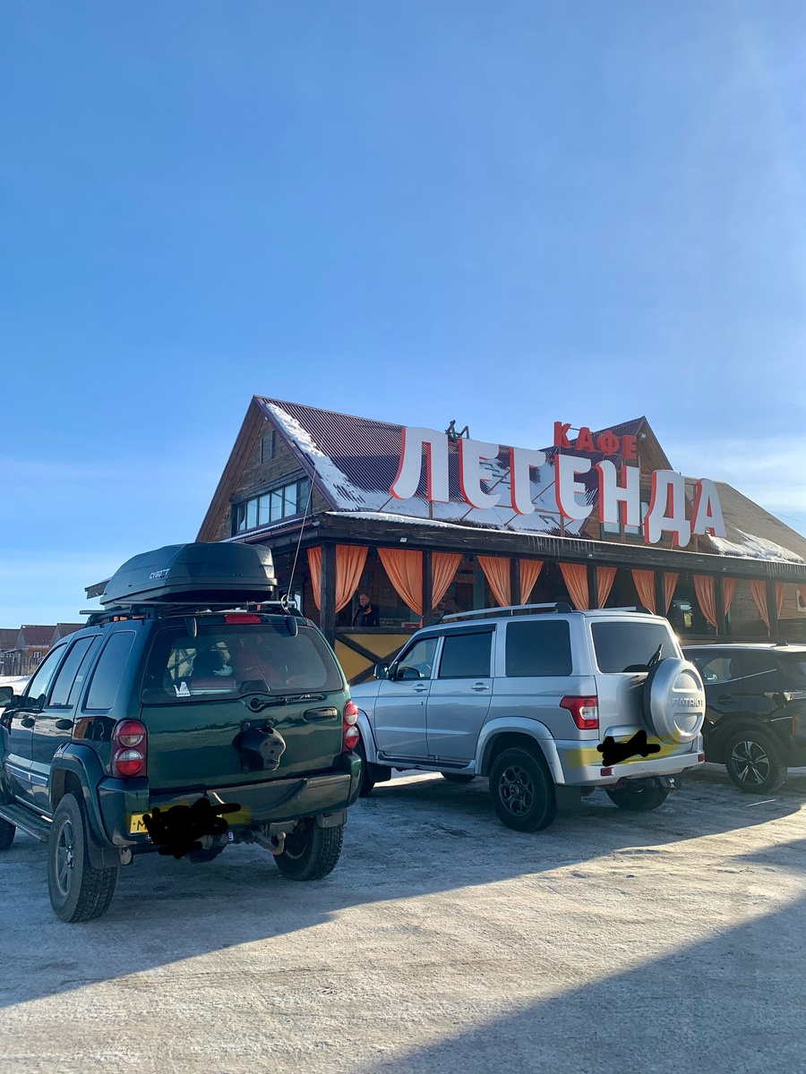 Примерно в 40 минутах езды от Иркутска есть придорожное кафе Легенда, там мы столовались дважды. По пути на Байкал и обратно.