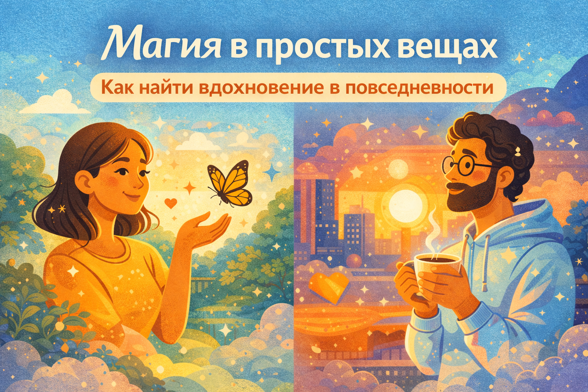В жизни часто бывает так, что мы ищем вдохновение в далеких странах, у знаменитых людей или в грандиозных событиях. Но что если самое важное вдохновение уже рядом с нами, в самых простых и обыденных вещах? Мы просто забываем замечать его. В этой статье поговорим о том, как научиться видеть магию в повседневных моментах и использовать её для роста и радости.