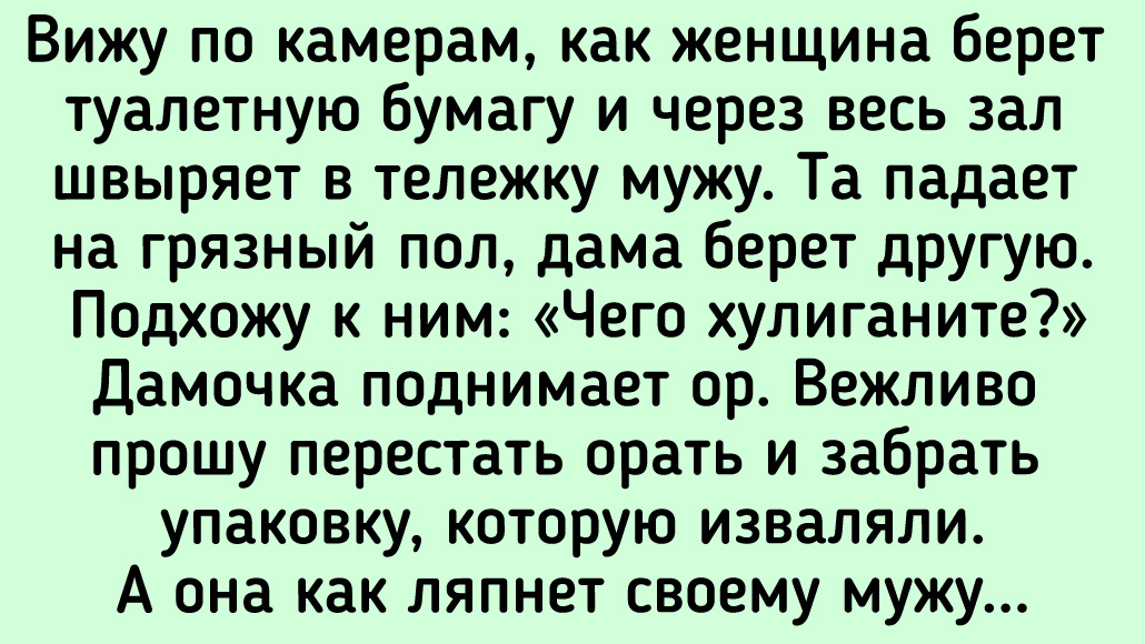 Каждый человек, которому доводилось работать в сфере торговли, знает, что порой от общения с клиентами или коллегами хочется спрятаться где-нибудь в подсобке и не выходить до вечера. Такое происходит настолько часто, что хочется уехать не просто в отпуск на море, а куда-нибудь в лечебный санаторий. Продаю женские сумки. Зашла женщина и стала очень подробно описывать мне модель сумки, которую она хочет. Я ей говорю, что у нас такой нет. А мне в ответ: «Но я хочу!» Пытаюсь спросить, а где она такую сумку видела. И тут она как выдаст: «Вообще-то она мне приснилась». © Галина Арсенюк Клиент приобрел 2 одинаковых телевизора. Он купил самую дешевую модель, доступную в то время. 10 лет спустя они оба перестали работать. Клиент позвонил и потребовал заменить их. Очевидно, мы отказали: гарантия на электронику составляет не более 3 лет. Он ходил к нам очень долго, грозил судом, писал в интернете отзывы. Люди смеялись над ним. Мы же сделали ему выгодное предложение по покупке новой техники, но та