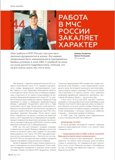 Журнал "Пожарное дело", №2-2026: Работа в МЧС России закаляет характер