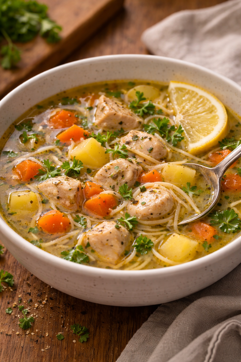 Посыпьте зеленью. Выключите. Лимонный сок в самом конце. Он делает вкус ярким, а суп — "живым". Без него будет просто бульон. С ним — полноценный ароматный ужин. Разливаю по тарелкам.