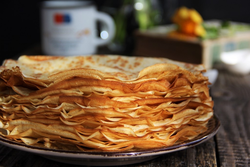 1. Соединим сухие ингредиенты: 220гр муки + 40гр сахара + 10гр ванильного сахара + щепотка соли. Перемешать. 2. Сделать в центре углубление и вбить 3 яйца. Помешивая, постепенно добавить 600гр молока. 3. Далее вливаем 40гр растопленного сливочного масла. 4. Раскалённую сковороду смазать подсолнечным маслом силиконовой кисточкой и выпекать блинчики. Можно жарить на сухой сковороде - они великолепно переворачиваются. Выход 15 штук.