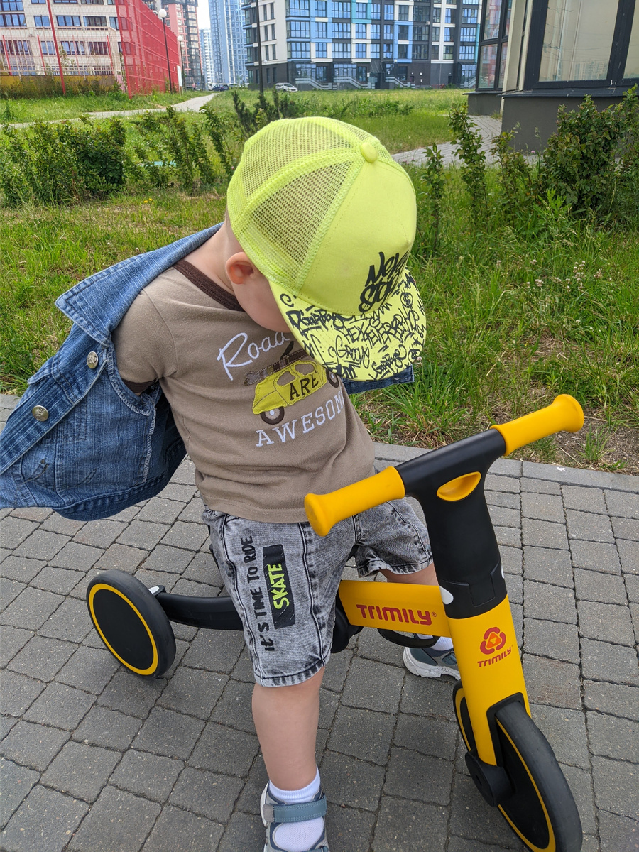 Он не стоит на месте, начиная с 1,5 года сначала на беговеле 3 колесном,