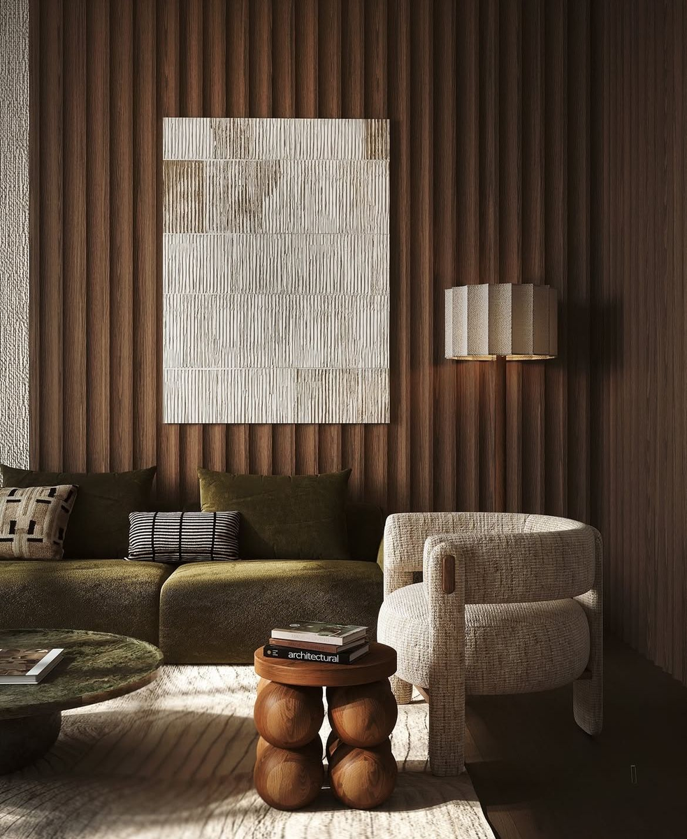 Почему в тренде: связь с природой, тепло (в противовес холодным серым интерьерам 2010-х), универсальность (сочетаются с нейтральными и зелёными оттенками).