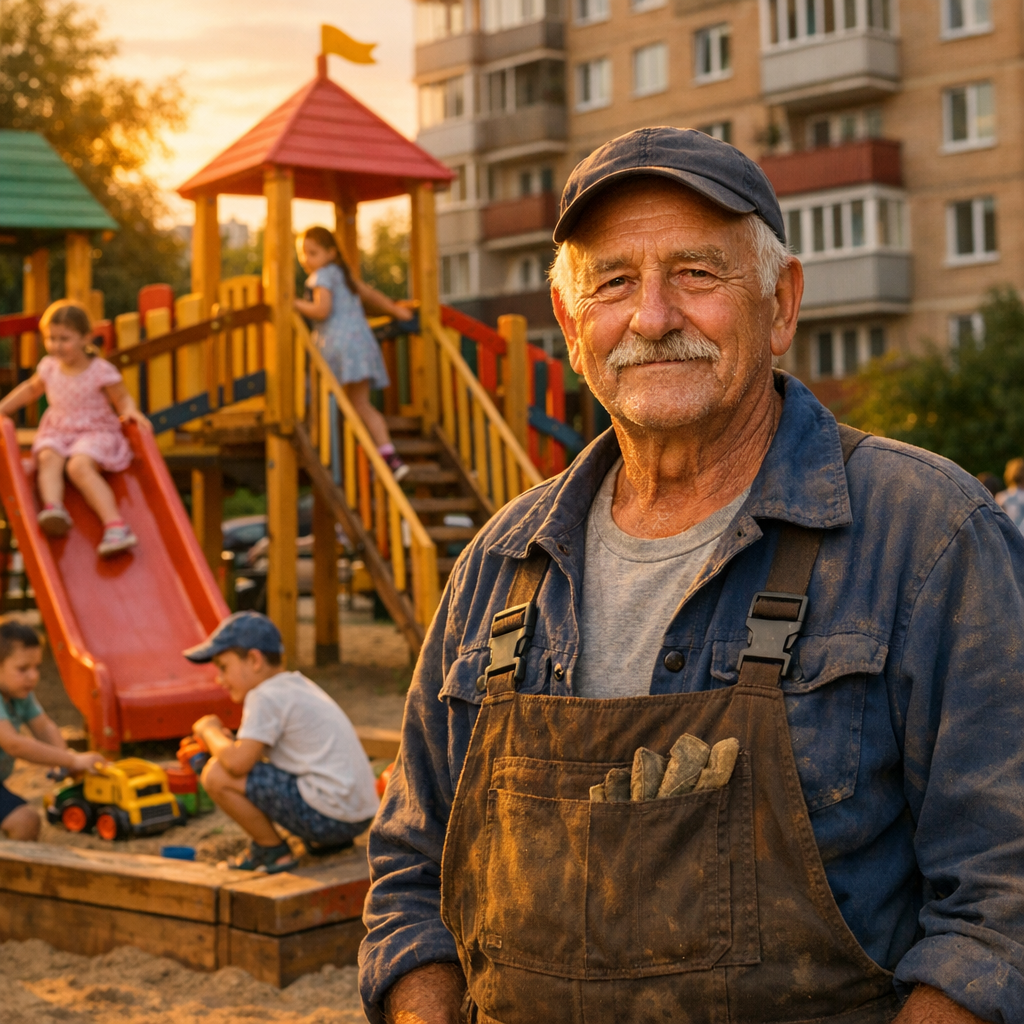 Потом подтянулся ещё один – Семёныч с пятого этажа, пенсионер, бывший сварщик. Он принёс из гаража сварочный аппарат и приварил крепления для качелей. Бесплатно. Просто так.