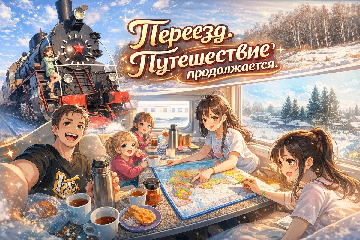 Ноябрь 2025 год. В Алтайский Бийск уверенно стали приходить снег и морозы, мы задумались о переезде в более мягкий климат. Выбор пал на черноморскую Кабардинку. Лететь самолётом получалось для нашей команды (2 взр + 3 ребёнка) накладно, принято смелое решение - ехать поездом. Бийск - Новороссийск, в пути чуть более 4 дней и 9-часовая пересадка в Москве. Вызов принят. Начали готовиться.