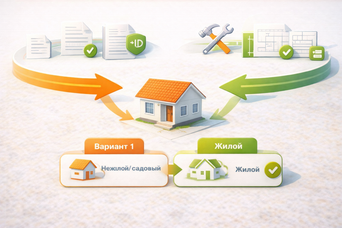 Представьте: вы построили добротный дом, провели газ, электричество, живете там с семьей. Но в документах это всё ещё «садовый дом». Прописаться нельзя, на субсидию не подать, а при продаже покупатели смотрят косо. Знакомо? Хорошая новость: статус можно исправить. Плохая — способ зависит от того, насколько дом «дотягивает» до жилого. Разбираем два сценария. Первый сценарий — для тех, кому повезло: есть необходимые инженерные решения (электроснабжение, отопление/возможность отопления, водоснабжение/водоотведение по ситуации), нормальное техническое состояние конструкций, нет критических нарушений. По сути, жилье готово, осталось только бумаги привести в порядок. Как работает процедура: Если всё в порядке, вы получаете решение о признании дома жилым. Дальше его используют, чтобы привести статус объекта в реестрах к фактическому (в отдельных случаях орган может направлять сведения межведомственно, но на практике лучше контролировать этот шаг). Типовые причины отказа тут тоже понятные: не