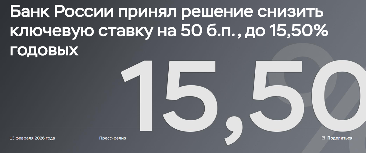 Сегодня состоялось заседание совета директоров ЦБ по денежно-кредитной политике (ДКП), на котором было принято решение о снижении ключевой ставки с 16 до 15,5%.