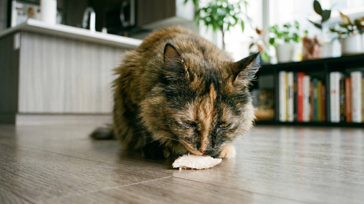 Курица — натуральное мясо, кошка — хищник. Казалось бы, что тут может пойти не так? На самом деле — много чего. Давайте разбираться. Кошка — облигатный хищник. Это значит, что без мяса её организм буквально не работает нормально. Таурин, незаменимая аминокислота, которую кошачий организм не синтезирует сам — поступает именно из животного белка. В курином мясе его достаточно. Сырая курятина кошке в целом подходит. Но «дать кусок из холодильника» и «правильно ввести сырое мясо в рацион» — это разные вещи. Главный риск сырого куриного мяса — сальмонелла и кишечная палочка. Здоровая взрослая кошка с нормальным иммунитетом может справиться с этим лучше, чем человек: у неё короче ЖКТ, а желудочный сок кислее. Но это не значит «ей можно всё». Котята, пожилые кошки и животные после болезней — особенно в зоне риска. Как снизить риски, если всё-таки кормить сырым: перед подачей мясо нужно заморозить при −18°C не менее 2–3 суток — это убивает большинство паразитов. Потом разморозить в холодильник