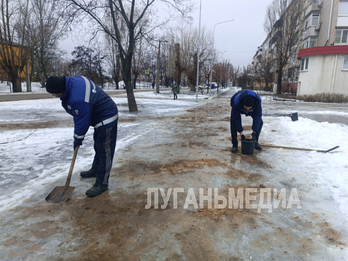 С самого утра жители муниципалитета столкнулись с проблемой – добраться в школу, на работу, по делам оказалось очень непросто: большинство улиц и дорог сковал гололед. Тут же коммунальные службы принялись решать этот вопрос. Работники МУП «Энергобытсервис Станично-Луганского района» оперативно приступили к борьбе со стихией – они осуществляют обработку дорог, тротуаров, пешеходных переходов и остановок общественного транспорта противогололедными материалами. На самых опасных участках, спусках и подъемах работает техника. Дорожные службы делают все возможное, чтобы минимизировать риски травматизма и аварийных ситуаций. Пешеходов и водителей убедительно просят быть предельно внимательными и переходить дорогу только в установленных местах. По словам первого заместителя главы Администрации Станично-Луганского округа Владимира Макеева, последствия непогоды в округе также устраняют специалисты Луганского автодора и дорожные службы, обслуживающие федеральную трассу в направлении Беловодска. –