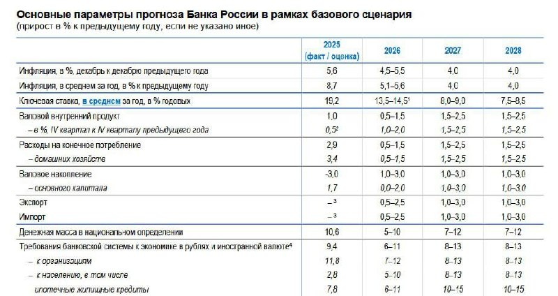 Только рынок начал привыкать к мысли, что пик по ключевой ставке пройден, как Центробанк снова сдвинул ориентиры. Регулятор обновил прогнозы на 2026–2028 годы, и они звучат менее оптимистично, чем многие рассчитывали. По инфляции цель снова отодвинули. На 2026 год ЦБ теперь ждёт 4,5–5,5% вместо более мягких ожиданий прошлой осени. Это уже третий перенос «возвращения к цели» — сигнал, что быстро выровнять цены не получится. По экономике чудес тоже не обещают. Прогноз по росту ВВП на 2026 год оставили в диапазоне 0,5–1,5%, на 2027–2028 — умеренные 1,5–2,5%. То есть резкого ускорения не ждут. Ключевая ставка — отдельный холодный душ для тех, кто уже закладывал дешёвые деньги в расчёты. На 2026 год ЦБ видит средний уровень 13,5–14,5%. На 2027 — прогноз по ставке повышен до 8–9%. Это значит, что период дорогих денег закончится не так быстро, как хотелось бы рынку. Кредитование расти будет, но без эйфории. Ипотека прибавит, но в умеренном темпе, на уровне нескольких процентов в год. Это