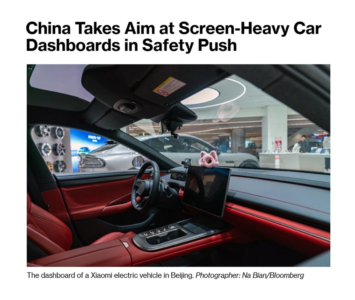 Китай начинает борьбу с ЭКРАНАМИ в машинах — Минпром КНР хочет (https://www.bloomberg.com/news/articles/2026-02-13/china-takes-aim-at-screen-heavy-car-dashboards-in-safety-push?taid=698ecb344fe0d800012accef&utm_campaign=trueanthem&utm_content=business&utm_medium=social&utm_source=twitter), чтобы безопасность авто контролировалась через физические кнопки. По правилам, предложенным ведомством, поворотники, аварийка, переключение передач и экстренный вызов должны активироваться через стационарные кнопки или переключатели. Власти пытаются угомонить Tesla, BYD Co. и Xiaomi с их модными электрокарами, чьи мониторы в салоне отвлекают водителей.