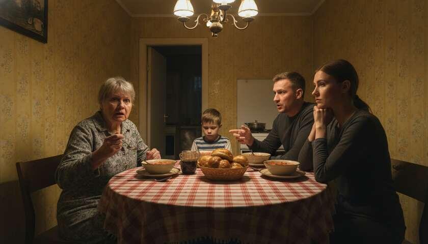 Воскресный вечер пах борщом и свежими булочками. Галина накрывала на стол, расставляя тарелки на старой клеёнке с выцветшими цветами. Света помогала — приносила ложки, вилки. Игорь сидел на диване, листая телефон. Артём, их семилетний сын, возился с машинками в углу. — Садитесь, всё готово, — Галина разлила борщ по тарелкам. За столом было тесно. Четыре стула вокруг круглого стола едва помещались в девятиметровой кухне. Жёлтые обои казались ещё более блёклыми при свете старой люстры. — Галина Петровна, — Игорь отложил ложку, — мы тут со Светой думали. Галина подняла глаза. В его голосе слышалась какая-то деловитость, которая настораживала. — О чём? — она осторожно положила ложку на край тарелки. — Продай квартиру. Купим побольше, на всех. Тишина. Галина застыла. Слова зависли в воздухе, тяжёлые, как камни. — На всех? — переспросила она тихо. — Ну да, — Игорь кивнул, как будто обсуждали покупку нового дивана. — Тебе комната, нам две. Артёму отдельная. Удобно же. — Мам, ну правда удобно
