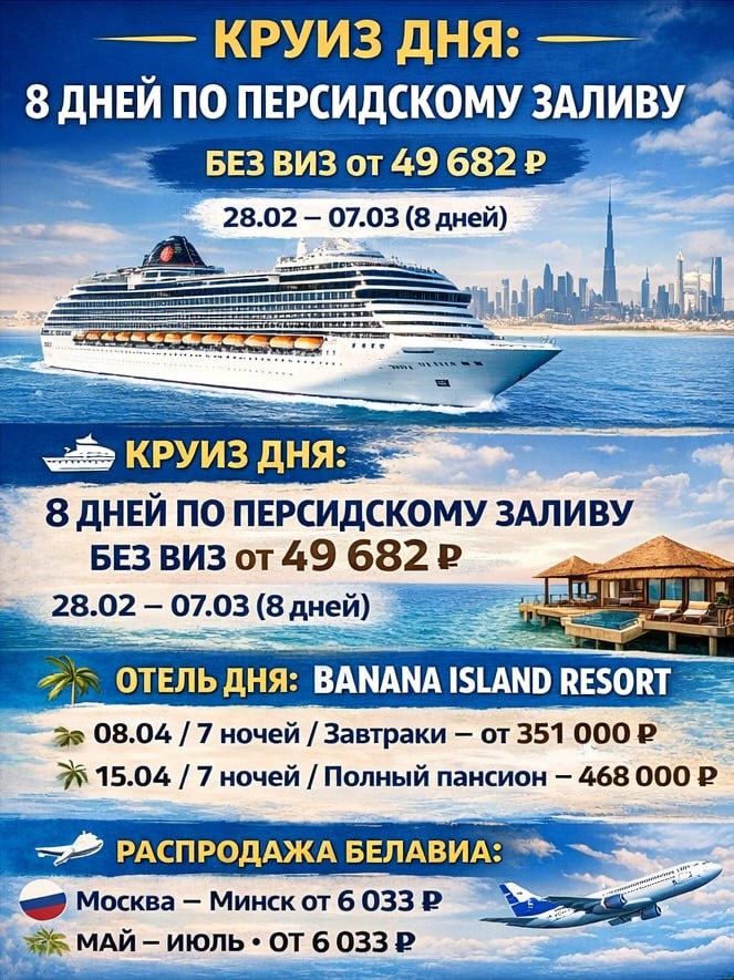 1.🚢 КРУИЗ ДНЯ: 8 ДНЕЙ ПО ПЕРСИДСКОМУ ЗАЛИВУ БЕЗ ВИЗ ОТ 49 682