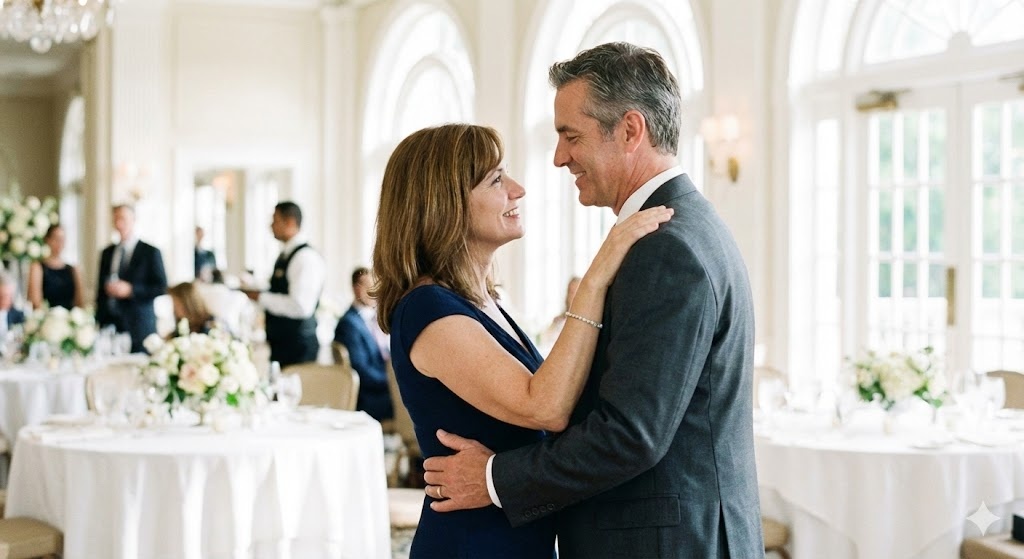 Ресторан сиял. Белые скатерти, цветы на столах, высокие окна с видом на сад. Настя в белом платье — красивая так, что у меня перехватило дыхание. Дима рядом — в строгом костюме, счастливый и немного растерянный, как все женихи.