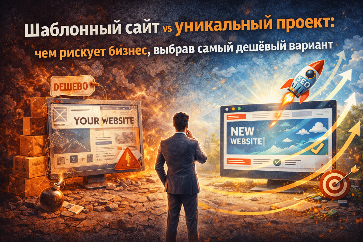 Но проблема в том, что самый дешёвый сайт почти никогда не оказывается самым выгодным. Разберёмся спокойно, без эмоций - где реальный риск. Шаблонный сайт - это: Выбирается дизайн, меняется текст, загружается логотип - и через неделю сайт уже в сети. На старте кажется, что бизнес сэкономил. Но дальше начинается математика. Шаблон - это готовая структура, которую уже используют десятки, а иногда сотни компаний. Проблема в том, что пользователь не осознаёт это рационально.