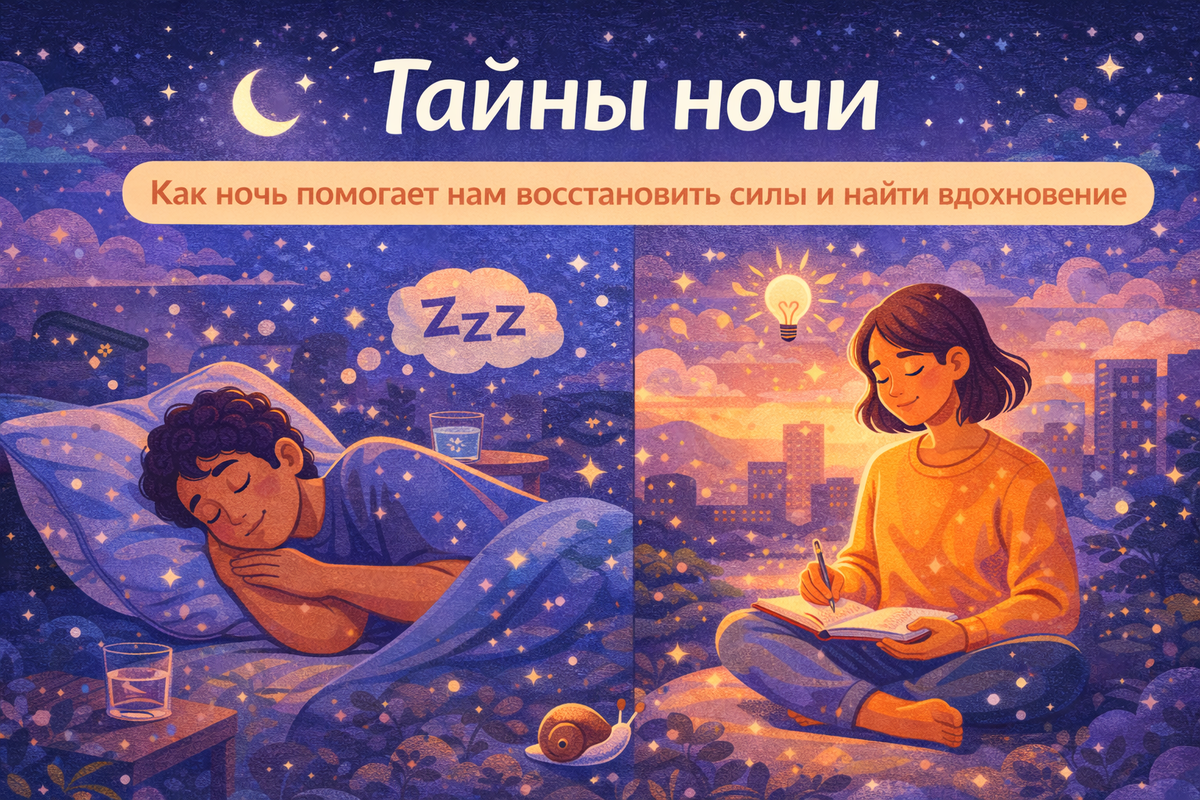 В мире, где мы всегда находимся в движении, ночь становится единственным временем, когда мы можем полностью остановиться. Каждый день приносит новые задачи и переживания, но ночь — это момент, когда можно сбросить накопленную усталость и восстановить силы. Но как правильно использовать ночь, чтобы не только отдыхать, но и находить вдохновение? Тьма ночи не пугает, а наоборот — помогает нам глубже погрузиться в свои мысли. Когда внешние раздражители исчезают, появляется возможность задуматься о том, что важно. Множество идей и решений приходят именно в те часы, когда мир затихает, и мы остаемся наедине с собой. Ночь — это не только время для отдыха, но и для глубоких размышлений и открытия новых возможностей. Если мы обратимся к истории, то обнаружим, что многие великие идеи и открытия были сделаны именно ночью. Тот же Альберт Эйнштейн, Пабло Пикассо, Вирджиния Вулф — все они находили свое вдохновение в ночные часы. Но почему именно ночь? Возможно, причина в том, что ночью мы меньше от