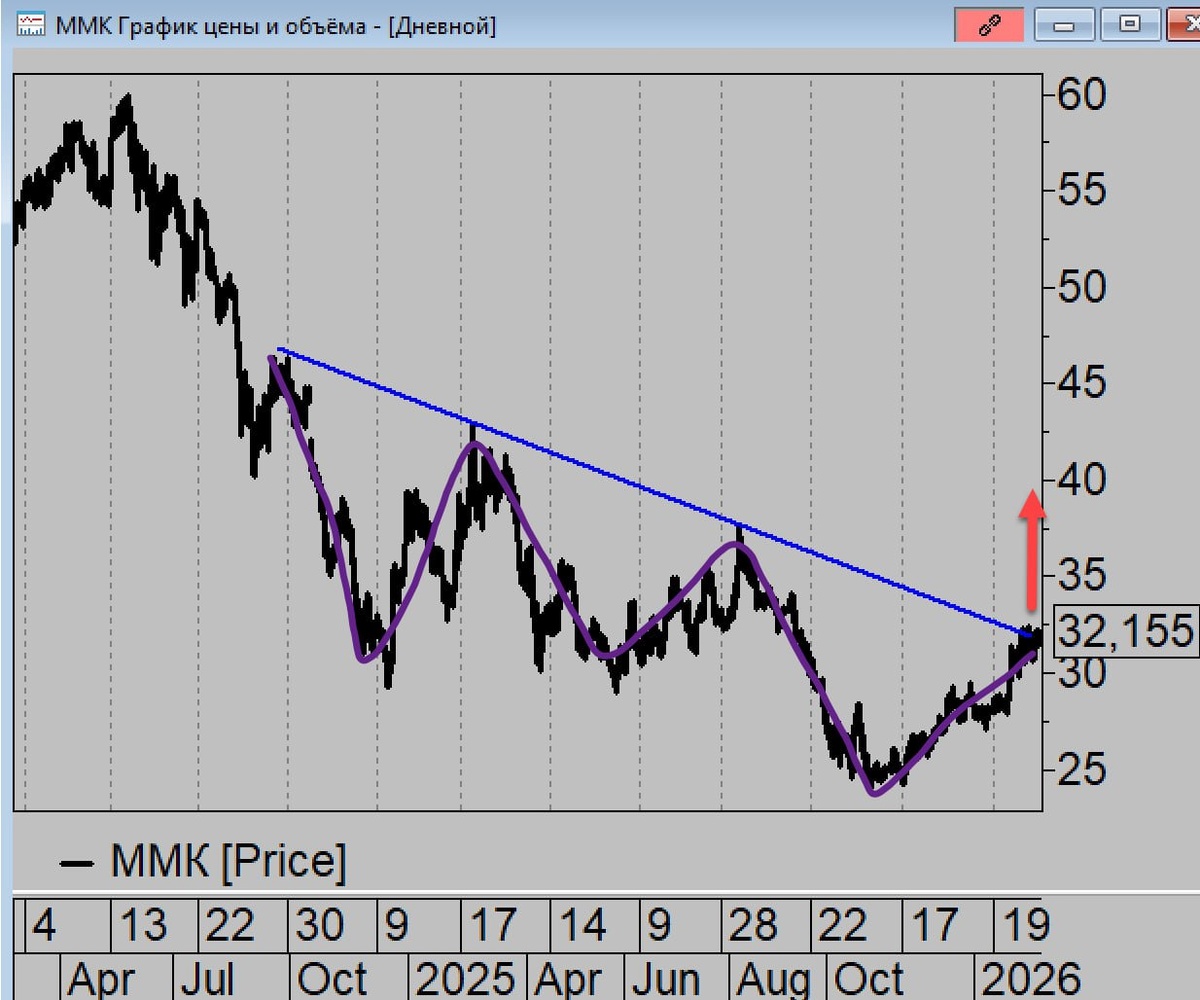 В ММК ни разу не уверен что это будет именно сегодня, но когда пробьём хаи последних дней должно начаться ускорение с целью движения выше 37... Под него его и покупали.
