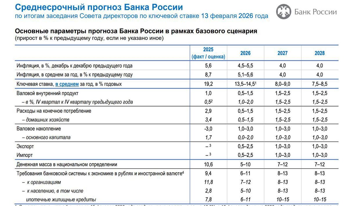 % 🔥 📍ЦБ оставил без изменений прогноз по росту ипотеки на 2026 год – 6-11%. В 2027 году регулятор также по-прежнему ожидает рост ипотечного кредитования в пределах 10-15%. Прогноз по средней ключевой ставке: ⬩ на 2026 год – 13,5-14,5% (ранее – 13-15%), ⬩ на 2027 год – 8-9% (ранее – 7,5-8,5%).