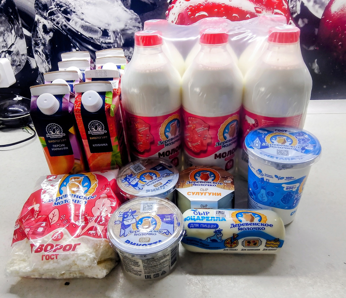 Молоко две упаковки, вторая у мужа в гараже в холодильнике хранится, как это выпивают так привозит от туда.