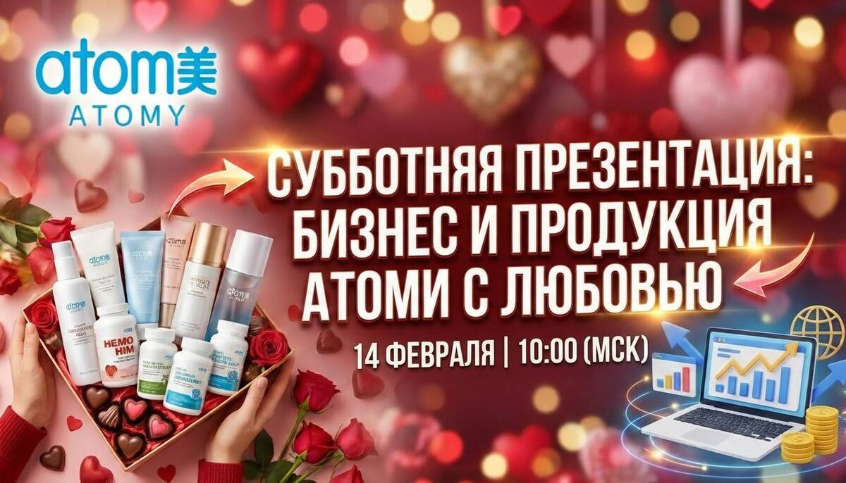 ! В эту субботу сделаем полезное + приятное: разберём возможности бизнеса и разложим по полочкам продукцию Atomy — спокойно, понятно и с любовью. Да ещё и в День Святого Валентина ❤️ 🗓 14 февраля ⏰ 10:00 по Москве 📍 Платформа — Zoom Будет формат «для своих»: с примерами из жизни и ответами на вопросы. Можно подключаться с новичками — им тоже всё будет понятно. Подключиться к конференции: Кто давно присматривался — отличный день, чтобы зайти и посмотреть вживую. Жду вас 🤍