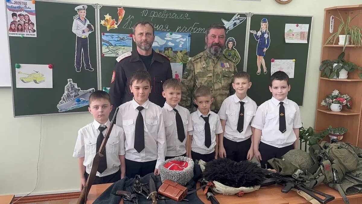 » классов с казаками-наставниками. В гости к ребятам пришли атаман ХКО Гаркушин Кордон Григорий Викторович Чернявский, казак, участник специальной военной операции Александр Григорьевич Чернявский и атаман Старонижестеблиевского СКО Денис Васильевич Агарко. Казаки рассказали школьникам о преемственности поколений: как защищали родную землю их предки и как сегодня эту традицию продолжают бойцы на передовой. Дети, в свою очередь, тепло поздравили гостей с наступающим праздником: читали стихи о защитниках Отечества и исполнили патриотическую песню «Атаман». ↗️ТАМАНСКИЙКАЗАЧИЙ ОТДЕЛ - присоединяйся!