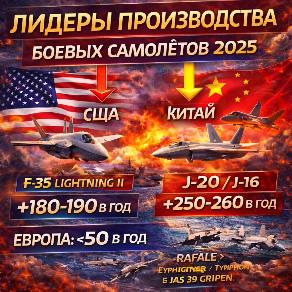 В 2025 году мировое производство боевых самолётов окончательно закрепилось в формате двухполюсной структуры с доминированием США и Китая