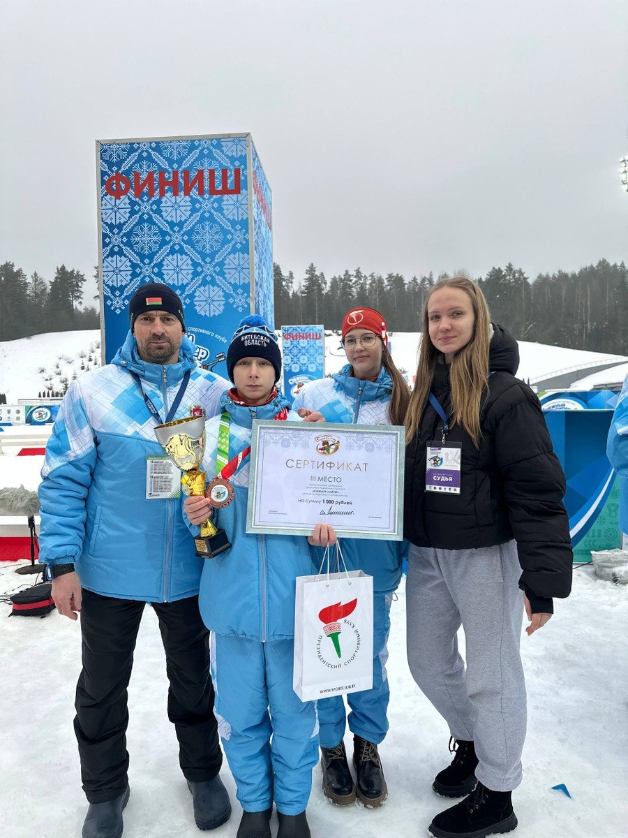 ! В финале республиканских соревнований "Снежный снайпер" принимают участие Валерий Салак и Полина Титович. 🥉 В средней возрастной группе В. Салак завоевал бронзовую медаль! 💪 Ребят на трассе поддерживают тренер Алексей Салак и выпускница СШ № 2 имени З.Е.Кожар и финалистка "Снежного снайпера" – 2021 Дарья Гембицкая. 📌 Впереди ещё один соревновательный день.