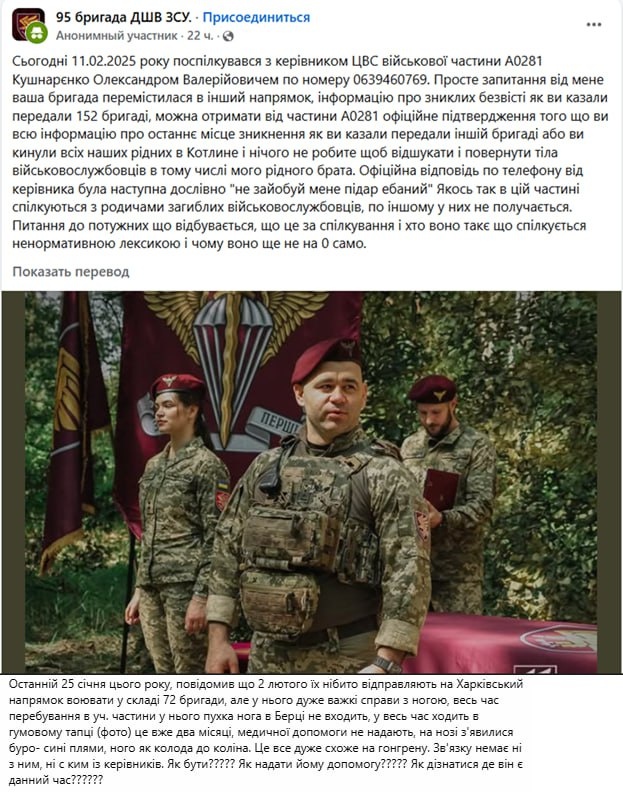 🇺🇦☠️ Командование 95 одшбр скидывают ответственность за пропавших на 152 оебр