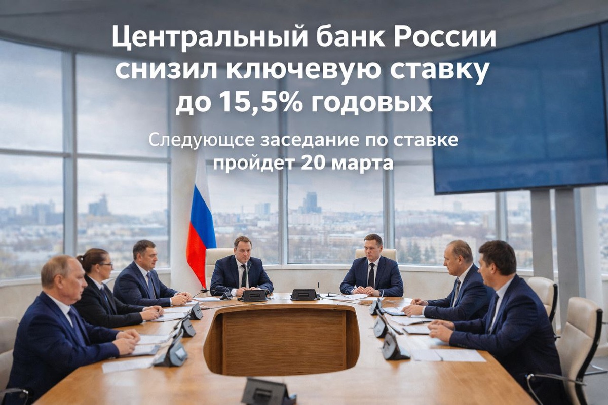 Центральный банк России снизил ключевую ставку до 15,5% годовых. Следующее заседание по ставке пройдёт 20 марта.