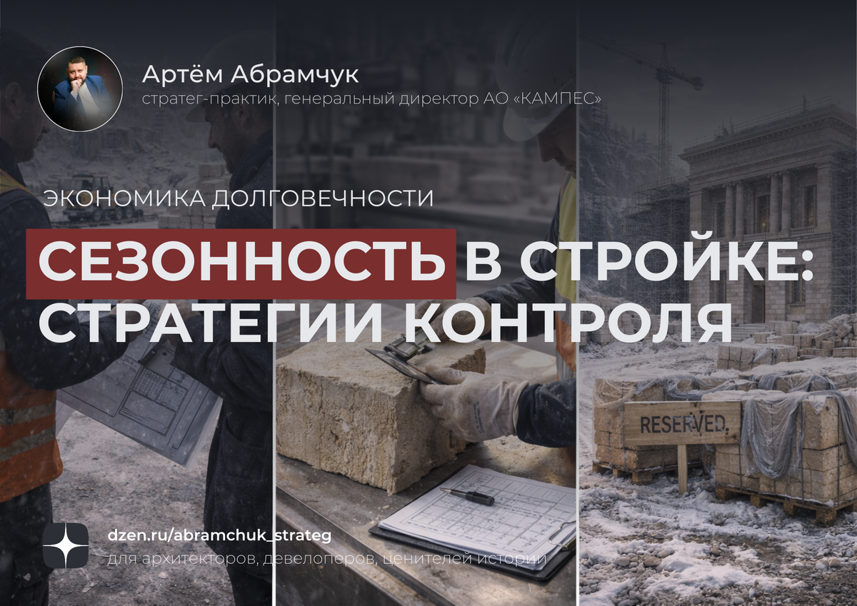 Сезонные колебания являются неизбежным явлением на строительном рынке. Однако для проектов, претендующих на статус и долговечность, они не должны быть оправданием для срывов сроков или потери качества. Контроль над ситуацией начинается с контроля над материалом. Проблема не в том, что зимой сложно работать. Проблема в том, что ключевые решения (выбор материала, утверждение образцов, резервирование партии) часто откладываются «на сезон». А когда начинается активная фаза, выясняется: нужного объема камня нужного качества нет в наличии, логистика перегружена, а допуски «гуляют». 1. Планирование от материала Интегрируйте поставщика камня в проект на этапе эскиза. Это позволяет спланировать добычу и обработку нужной партии заранее, минимизировав риски. 2. Жесткие допуски как норма Четкие технические требования к геометрии, цвету и фактуре каждого блока являются основой безупречного фасада. 3. Буферный запас не для всех Стратегический запас материала должен формироваться поставщиком для ключ