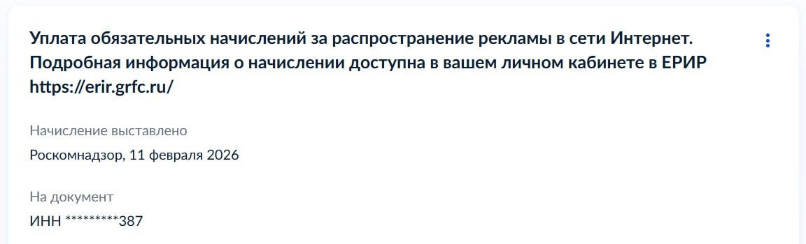 Заплатил Роскомнадзору за наше счастливое детство за распространение рекламы в сети Интернет