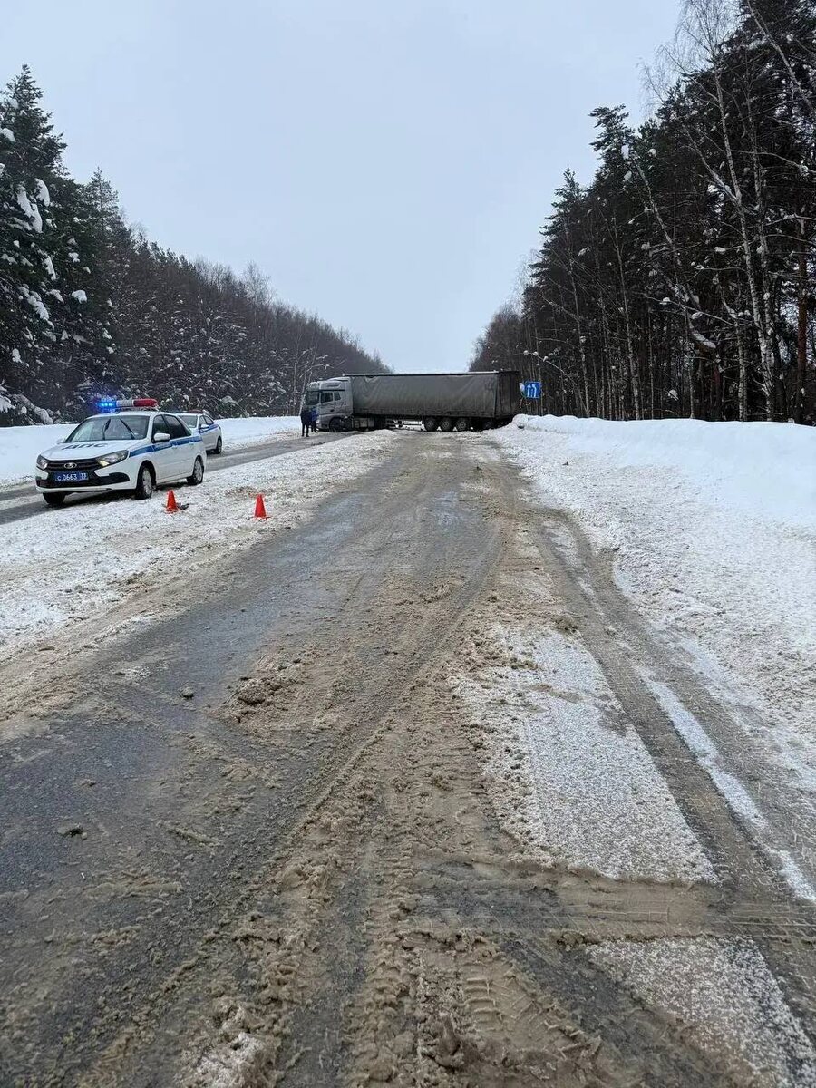 Сегодня большегруз занесло на федеральной трассе, и тот врезался в попутный микроавтобус с пассажирами. Он ехал по маршруту «Вязники-Владимир». На место происшествия выехал прокурор района Филипп Блохин. Надзорное ведомство проводит проверку. Фура перегородила обе полосы. Всех водителей разворачивают с трассы. Транспортные потоки направляют в объезд по автодороге Хохлово-Камешково-Ручей. По информации пресс-службы регионального УМВД, 5 пассажиров и водитель доставлены в медучреждение. Движение на данном участке автодороги затруднено. Сотрудники Госавтоинспекции регулируют дорожное движение.