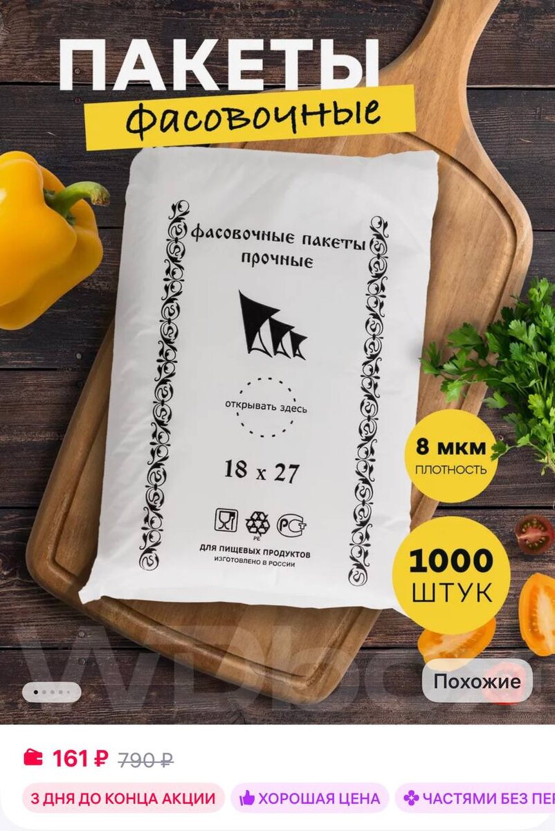 😀😀😀WDbox Пакеты фасовочные целлофановые пищевые для заморозки 1000 шт