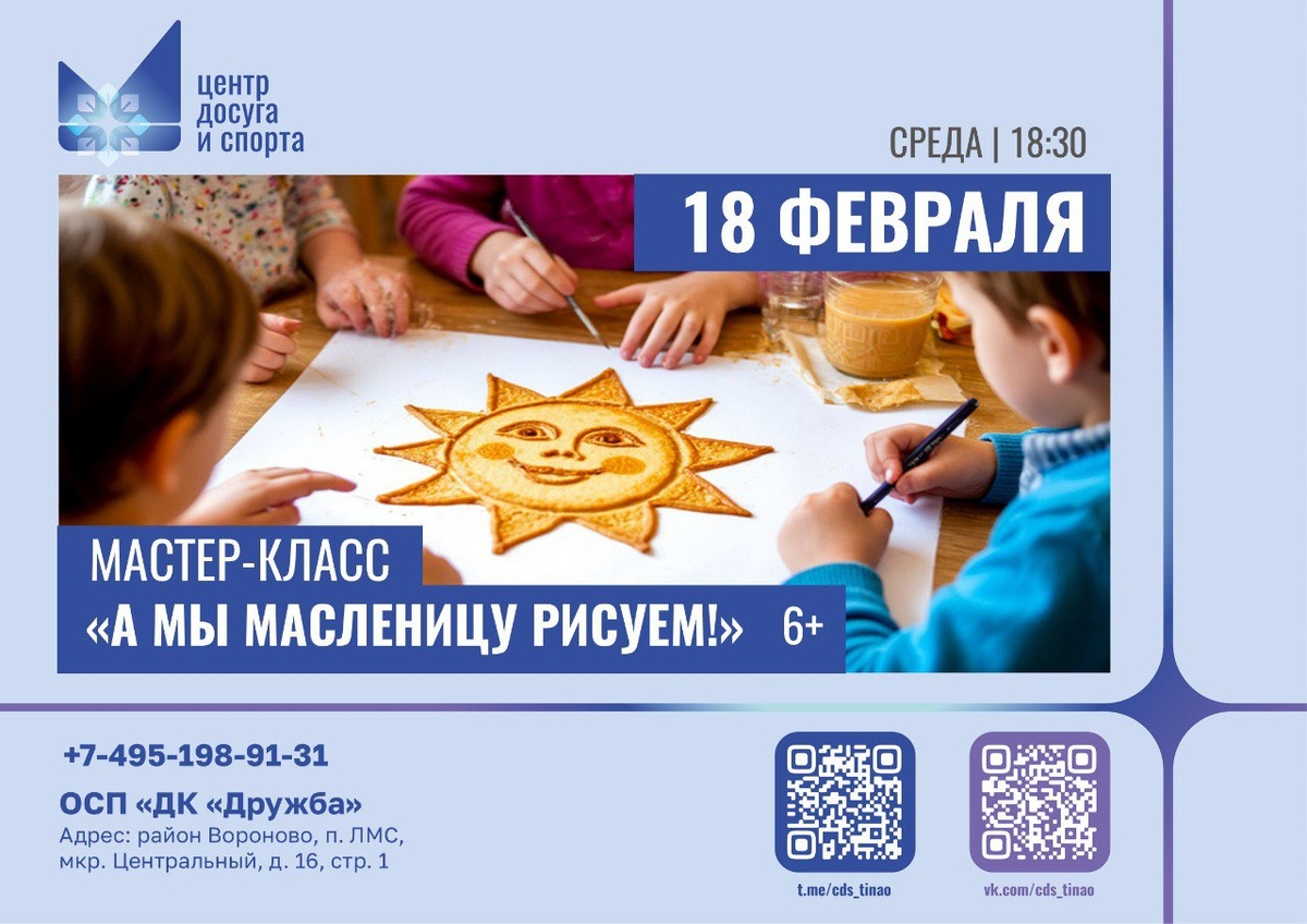!» Дети превратятся в настоящих художников и изобразят на бумаге весеннее солнце, золотистые блины и народные гуляния. ✨🥞 Почувствуйте приближение праздника через яркие краски и весёлое творчество! #анонсывороново #анонсытинао #новоститинао