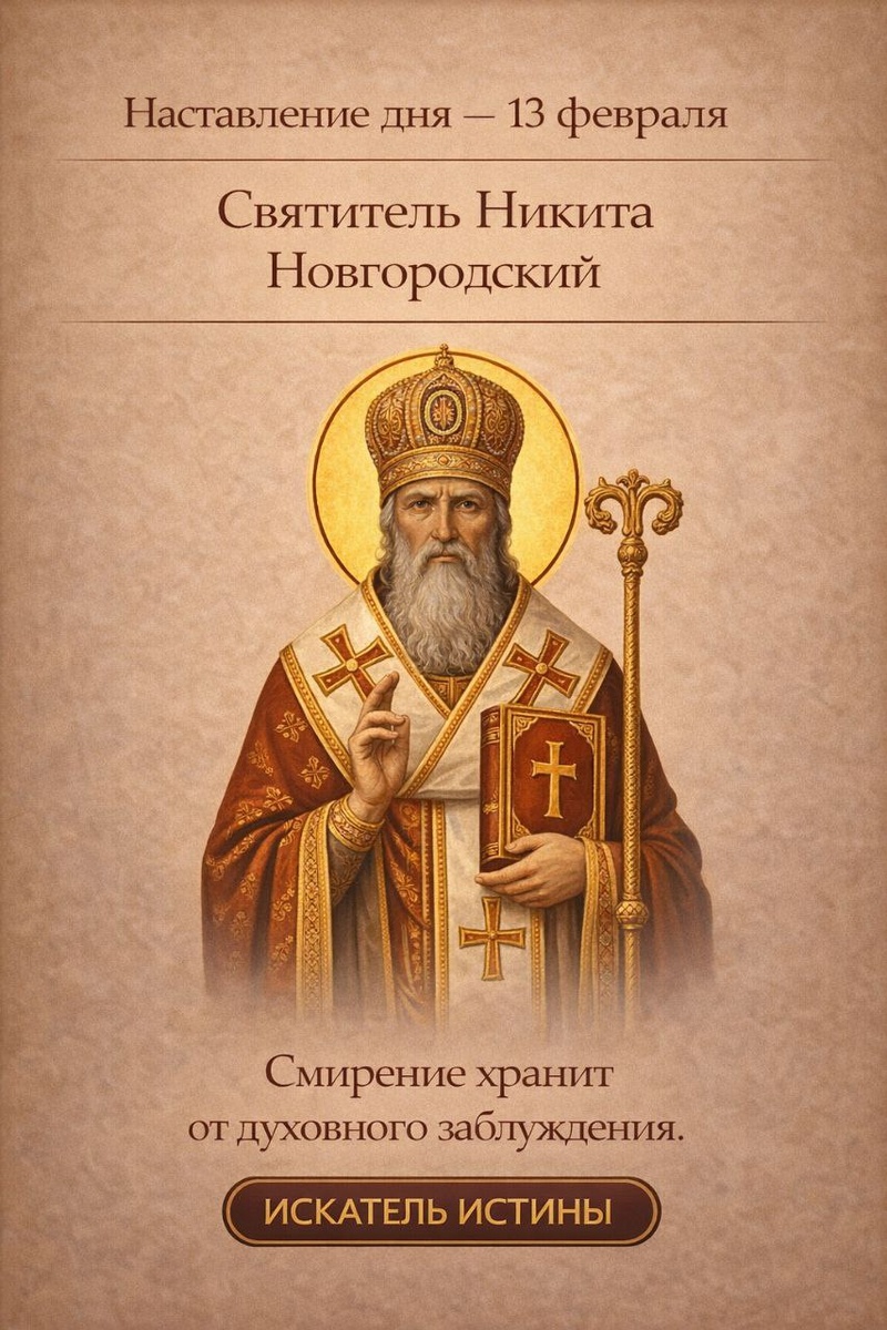 Святитель Никита Новгородский В этот день Церковь вспоминает святителя Никиту, епископа Новгородского. Он известен не только как архипастырь, но прежде всего как человек, прошедший путь духовного исправления. В юности Никита стремился к подвигам и уединению. Однако без должного рассуждения он принял на себя чрезмерные труды, доверившись ложному духовному опыту. Этот тяжёлый урок научил его главному: духовная жизнь невозможна без послушания и смирения. По молитвам преподобных отцов он был избавлен от заблуждения и вернулся к трезвому церковному пути. Со временем святитель Никита стал мудрым пастырем, заботящимся о своей пастве и укрепляющим веру народа. Его жизнь показывает, что падение не является концом пути. Господь поднимает человека, если тот готов признать ошибку и исправиться. Истинная сила христианина — не в необычных дарах, а в верности Церкви и смиренном служении. Память святителя Никиты напоминает нам о важности духовного рассуждения. Нельзя искать особых состояний или н