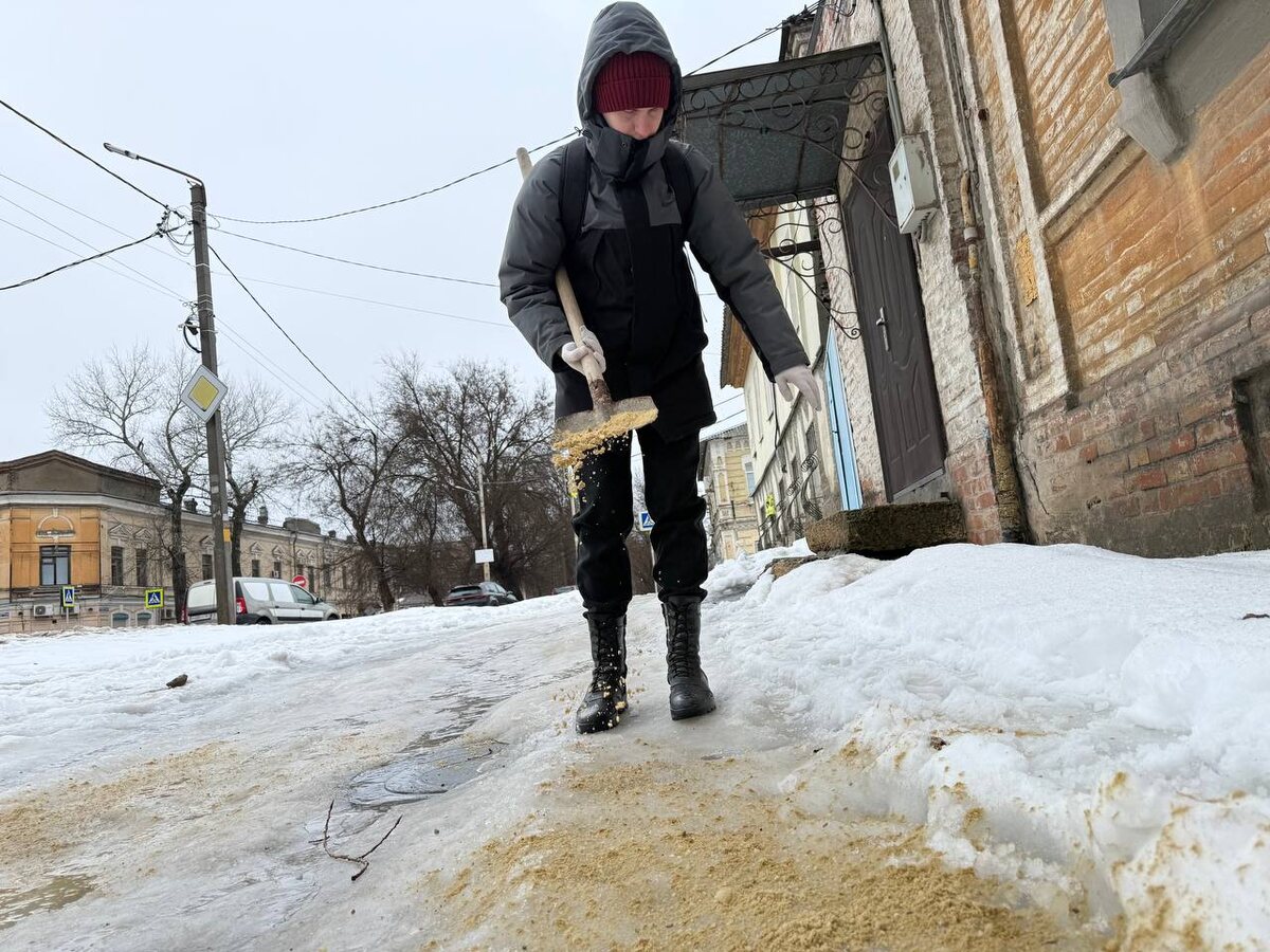 В городскую Думу Новочеркасска обратилась жительница частного сектора на ул.Пушкинской, бабушка участника СВО. Она рассказала, что тротуар в промежутке от ул.Комитетской, до ул.Красноармейской оказался полностью подо льдом. Жители домов с трудом и небезопасно могли пробираться по скользкой дорожке к остановкам и социальным объектам. Во дворах проживают старики и дети, для которых перемещение по льду могло быть травмоопасным. Обращение аппарат городской Думы принял оперативно к исполнению. Депутат городской Думы Алексей Раздоров оказал содействие в выделении около 150 кг песко-соляной смеси. Соль и песок завезли на территорию, где за работу взялись члены Молодежного парламента при городской Думе. В течение двух часов тротуар был благоустроен. Полностью обработали подъем от домовладений и проход во двор. Жители улицы Пушкинской поблагодарили за помощь в решении проблемы.