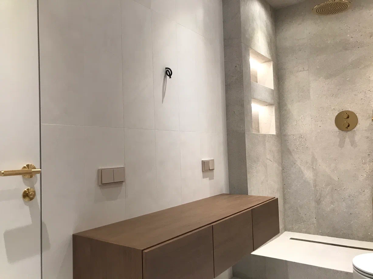 Когда речь заходит о маленькой ванной, чаще всего обсуждают сантехнику, мебель, способы хранения и т.д. Но на практике решающим оказывается не это. Пространство в таких помещениях «формируется» глазами. И именно плитка в этой задаче — главный инструмент, который либо помогает восприятию, либо безжалостно все портит. Визуальный объём — это не иллюзия и не дизайнерская магия. Это набор закономерностей, которые стабильно работают из проекта в проект. Ниже в статье — разбор приёмов без упрощений и без декоративной теории. Когда облицовка заканчивается на уровне глаз или чуть выше, возникает ощущение незавершенности. Визуально стена обрывается, и высота помещения уменьшается. Это один из самых надёжных способов визуально «поднять» потолок в компактной ванной. В нашем Телеграм-канале мы рассказали о технических ошибках, которые чаще всего допускают при укладке плитки. Если хотите разобраться в теме глубже — загляните, там всё собрано в одном месте. Чем больше в помещении линий, тем меньше он