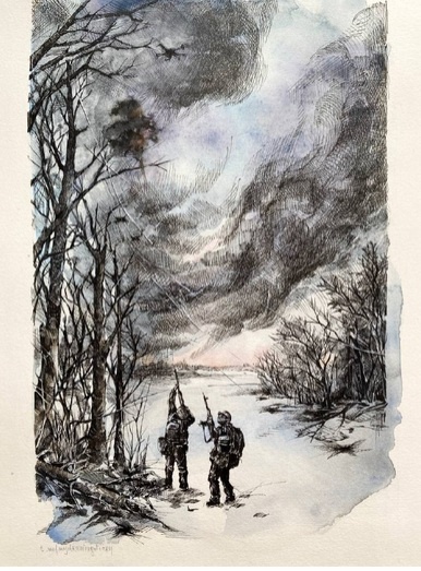Сразу не понятно, в чём она. Маскирующая подпись такая: «Один с ружьем, и другие с АК… обычные дроны, дроны на оптоволокне, баба-яга, рой дронов… Просто война с дронами. Бойцы группировки «Север» в Харьковской области, февраль 2026». Изодискредитация, как обычно, это образ российской неосновательности в недоведении картинки до мысленно представляемой рамки. Здесь это особенно заметно справа внизу. Теперь ищем уязвимость. Спросим у интернета: «свидетельством чего является переход в борьбе с дронами к стрелковому оружию». Ответ: «Засилье на передовой украинских ударных дронов требует оперативного решения данной сверхактуальной проблемы в зоне СВО» (https://topcor.ru/46677-pochemu-strelkovoe-oruzhie-priznano-glavnym-sredstvom-antidronnoj-zaschity.html ). То есть Украина и Запад смогли обеспечить это «Засилье». «К 2025 году украинские предприятия произвели более 2 миллионов дронов с видом от первого лица ( FPV ), а общая годовая производственная мощность, по прогнозам, достигнет 4–5 миллио