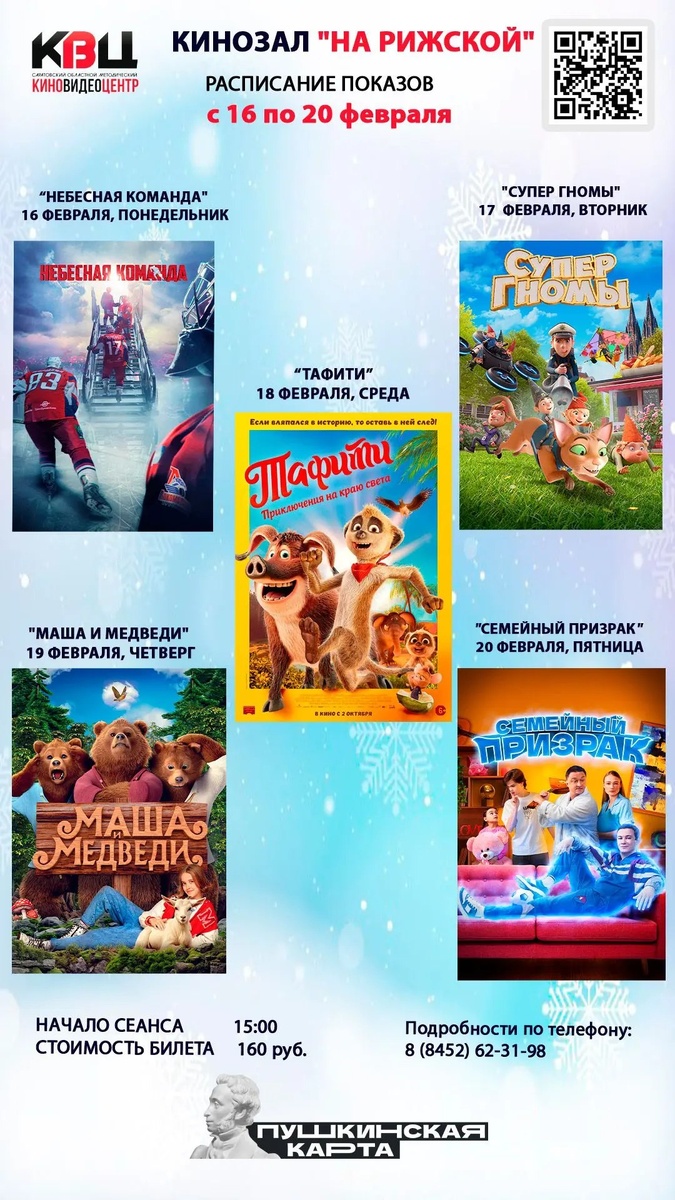 π₯ ΠΠΈΠ½ΠΎΠ·Π°Π» Β«ΠΠ° Π ΠΈΠΆΡΠΊΠΎΠΉ" - Π·ΠΈΠΌΠ½Π΅Π΅ ΡΠ°ΡΠΏΠΈΡΠ°Π½ΠΈΠ΅ Ρ 16 ΠΏΠΎ 20 ΡΠ΅Π²ΡΠ°Π»Ρ! ΠΠ΄Π΅ΠΌ Π²ΡΠ΅Ρ Π² Π‘Π°ΡΠ°ΡΠΎΠ²ΡΠΊΠΎΠΌ ΠΎΠ±Π»Π°ΡΡΠ½ΠΎΠΌ ΠΌΠ΅ΡΠΎΠ΄ΠΈΡΠ΅ΡΠΊΠΎΠΌ ΠΊΠΈΠ½ΠΎΠ²ΠΈΠ΄Π΅ΠΎΡΠ΅Π½ΡΡΠ΅