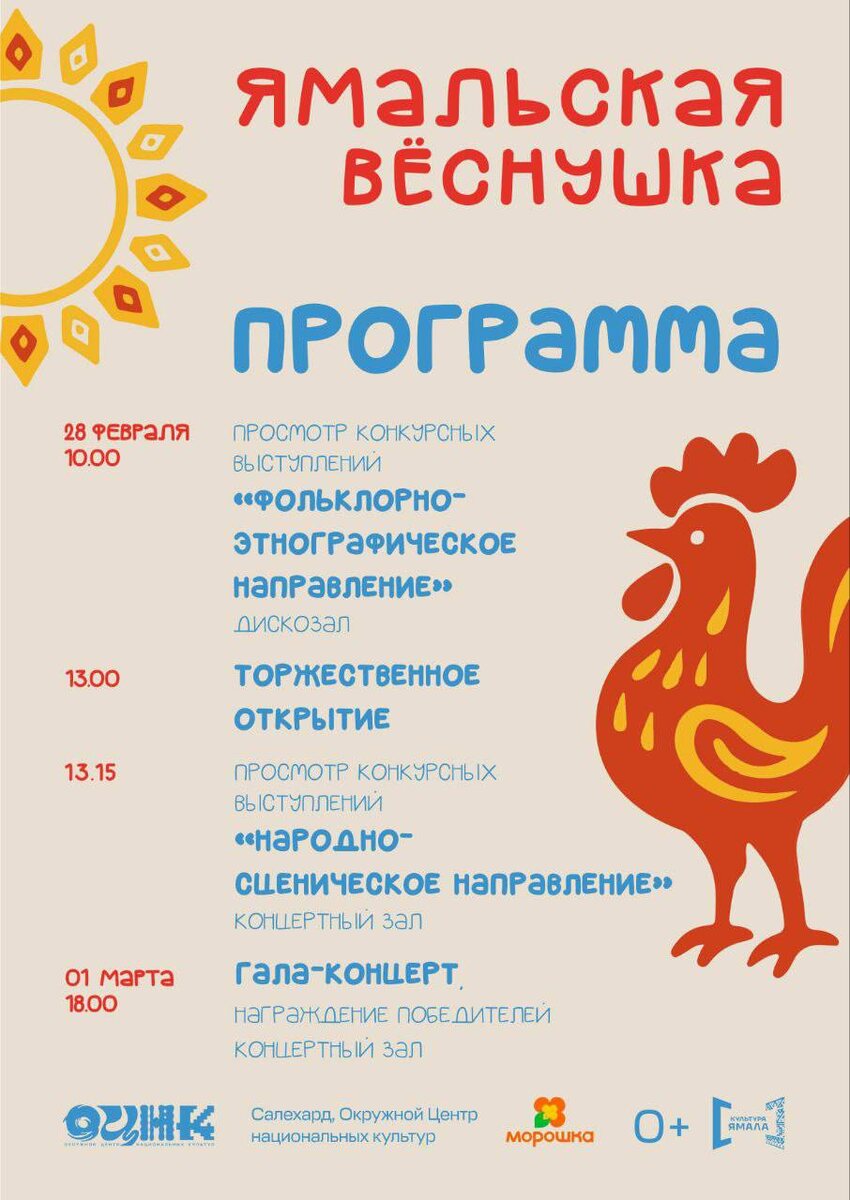 » Приглашаем на торжественное открытие конкурса и просмотр выступлений по двум направлениям. Вход свободный. А 1 марта всех ждем на Гала-концерт открытого фестиваля-конкурса русской песенной культуры «Ямальская вёснушка». Билеты здесь. *️⃣билеты можно приобрести по Пушкинской карте или через сервис «Морошка» со скидкой 20% #Салехард #ОЦНК #КультураЯмала #ЯмальскаяВёснушка 👍 в ВК | MAX
