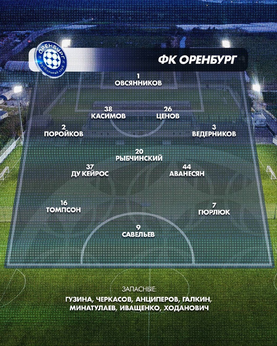 🇰🇿 Касимов и Ценов в обороне, Томпсон и Гюрлюк в атаке. Дамиан Пуэбла и Джон Паласиос получают визу, Фахд Муфи и Алексей Татаев немного приболели. #ОренбургКайрат
