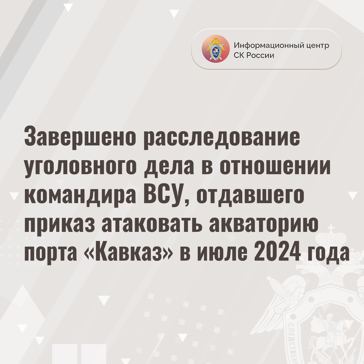 Завершено расследование уголовного дела в отношении командира ВСУ, отдавшего приказ атаковать акваторию порта «Кавказ» в июле 2024 года