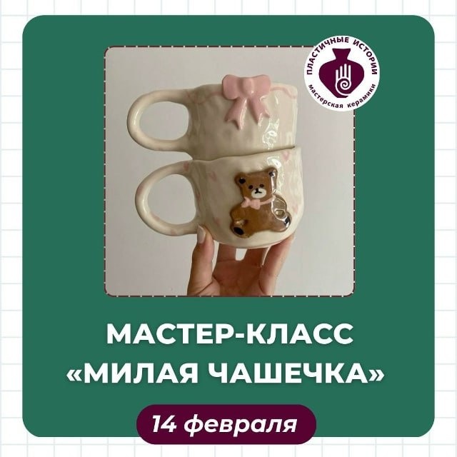 ! МАСТЕР-КЛАСС "МИЛАЯ ЧАШЕЧКА" ☕️ У вас еще нет эко-кружки из глины? Кружки, сделанной вашими руками? Давайте исправим это 14 февраля! Можем провести мастер-класс как для детей, так и для взрослых. Но записываться нужно заранее! 🗓 Ждем детей на Союзной, 107 по субботам в 11.00 и на Красногеройской, 18 по субботам в 12.30. 👛 Прайс 2026 для взрослых: — Если работа из 200 гр. глины, то по 850 руб./60 мин. — Если работа из 250 гр. глины (чайная),то по 1000 руб./60 мин. — Обжиг оплачивается отдельно по 250 руб. — Глазурование — 450 руб. 👛 Прайс 2026 для детей 5-12 лет: — Работа из 200 гр. глины, 650 руб./60 мин. — Обжиг оплачивается отдельно по 250 руб. — Глазурование — 450 руб. Чтобы записаться, пишите нам в сообщения группы!