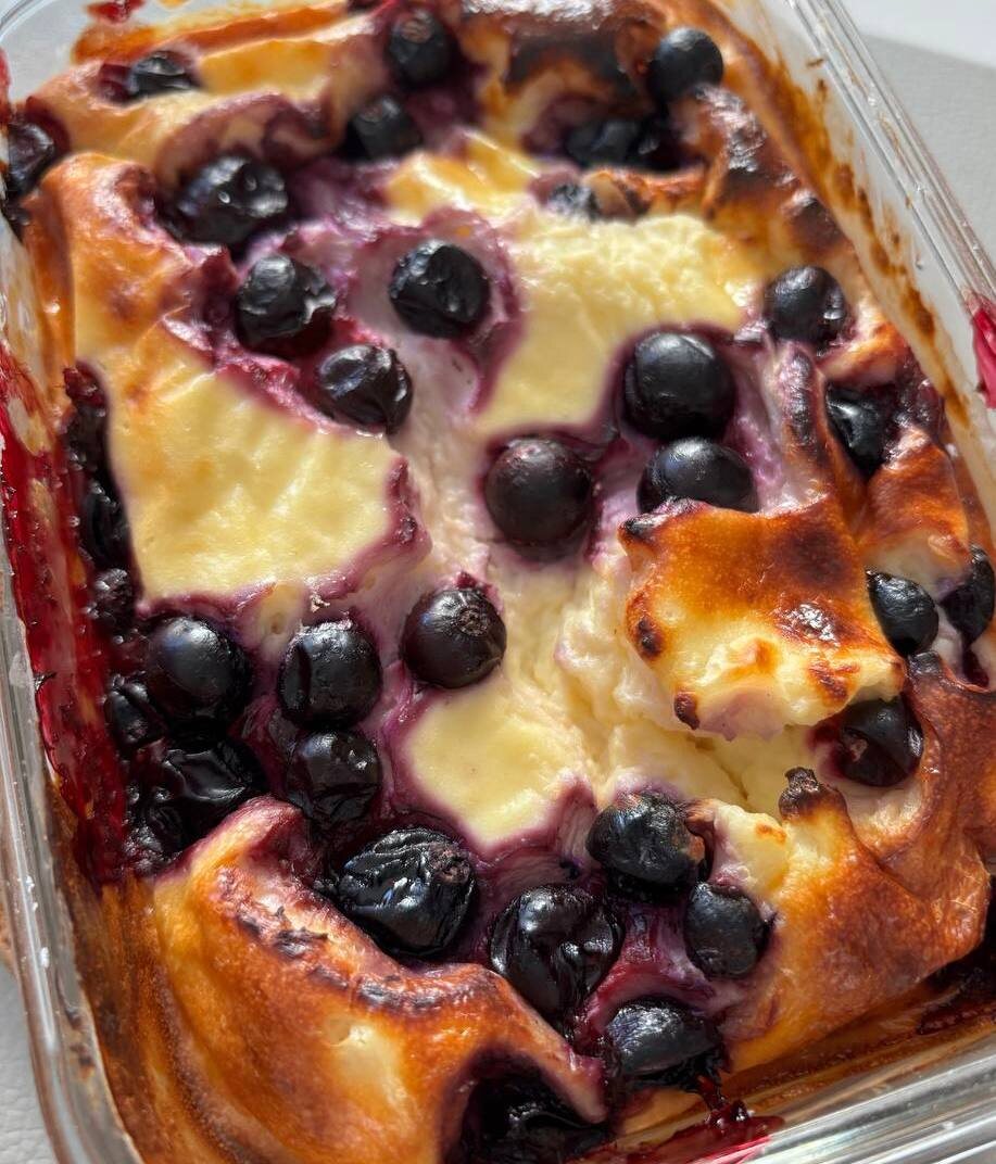 Сегодня хочу поделиться рецептом невероятно вкусной и нежной запеканки, которая по консистенции напоминает чизкейк. Готовиться без муки и манки 👌 Ингредиенты: Удобнее всего замешивать все ингредиенты сразу в форме для запекания - у меня стеклянный контейнер 16х11,5х6 см. Смешать 240 г мягкого творога и 100 г творожного сыра. Добавить 2 яйца, 30 г кукурузного крахмала и подсластитель или сахар. Затем все ингредиенты перемешать до однородности. Добавить любимые ягоды - можно замороженные. Я добавляла замороженную черную смородину, также пробовала с малиной - оба варианты были очень вкусные! 😊 Запекать в духовке около 30 минут при 200 градусах (время может немного меняться в зависимости от духовки). Главное после приготовления дать запеканке полностью остыть - так ее консистенция становится более нежной. Такое блюдо содержит много белка за счет творога и творожного сыра, отлично подходит в качестве завтрака, перекуса или десерта после основного приема пищи. С удовольствием ее едят и д